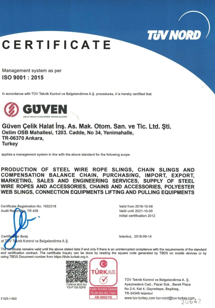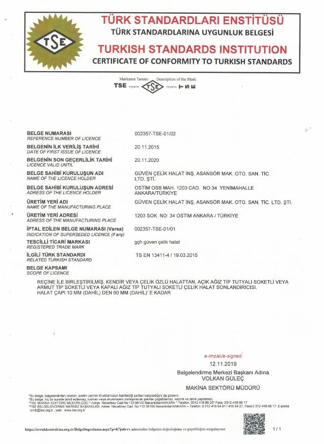Türk Standartları Enstitüsü Kritere Uygunluk Belgesi